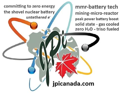 JPI is the project lead, working with indigenous communities, regulators, nuclear energy & high-density battery design and fabrication experts, to bring the first nuclear-battery system, capable of delivering 3 MWe+ to power a shovel by 2035. This same system is being targeted by JPI to reliably power remote communities in Canada’s North and around the globe. With an anticipated 7.5 year life for U-graphite Triso refueling, the Mining Micro Reactor Battery has the power to cut restrictive grid ties and be customized up to SMR capacity. No water, No emissions, Simply Safe.